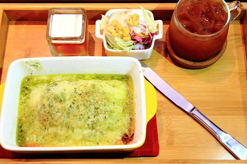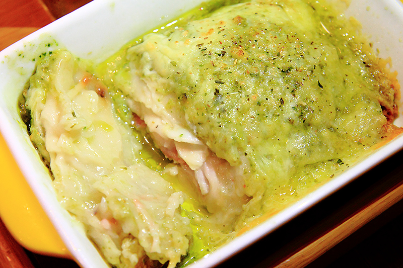 威尼斯海鮮千層焗烤麵,熱騰騰上桌,可感受非常燙的溫度,主要用了許多海鮮元素,像是蝦仁、蟹肉棒、花枝、魚肉、培根等搭配,海味十足,卻沒有腥味,千層麵一層層,扎實不膩,加入些青醬料理,青醬味道不搶過起司香氣,越嚼千層麵的口感,帶點變化與層次,也是讓人推薦的一款義大利焗烤麵食。