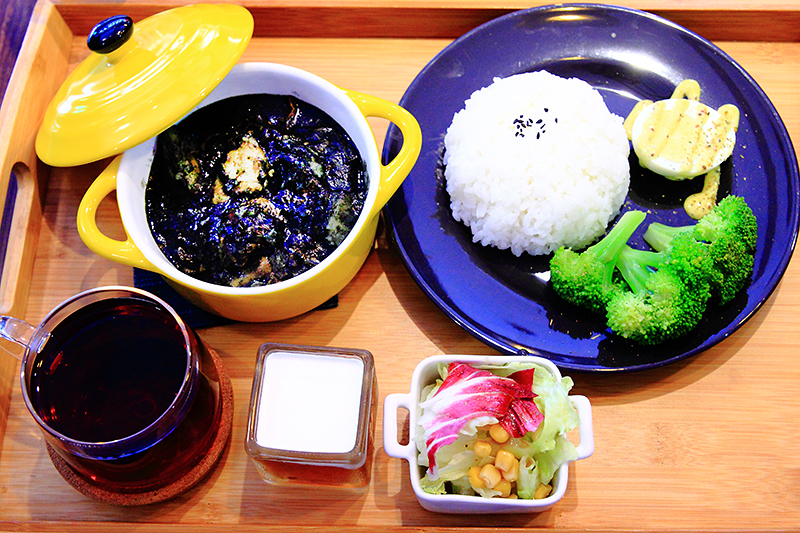 黑咖哩牛腩,整個黑的發亮,主要是用牛肋條、馬鈴薯、紅蘿蔔、薑黃,加入獨特的黑竹炭製作,造就這咖哩色澤整個發黑,濃郁濃稠的黑咖哩牛腩,非常下飯,把一旁搭配烤的酥脆麵包一起吃,也好入味。