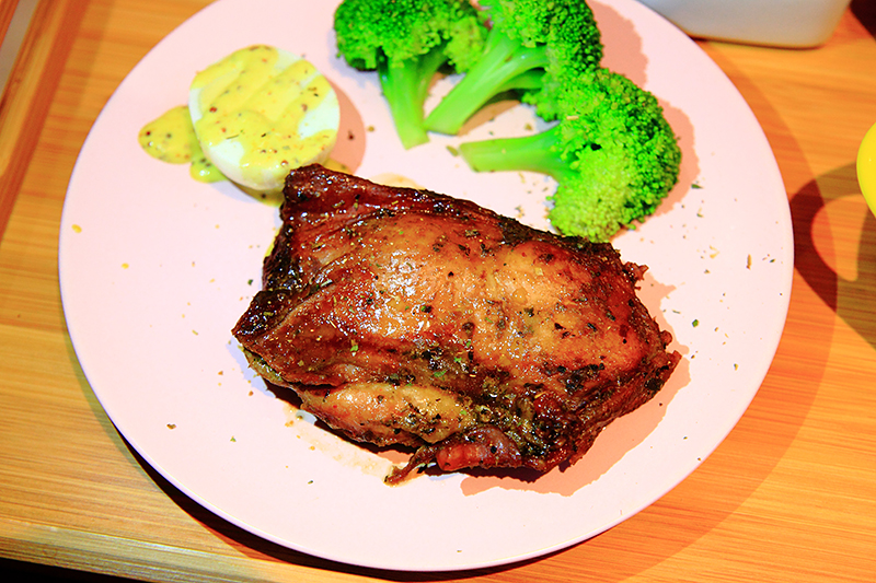 西西里香烤雞腿排,主要用了小茴香、百里香、洋莞菜、迷迭香製作,醃製入味的雞腿排,整塊雞腿,肉質先嫩,迷迭香散發的自然香氣,與烤過的雞腿非常對味,更逼出特色香氣,看似簡單,卻不平凡,也很好吃。