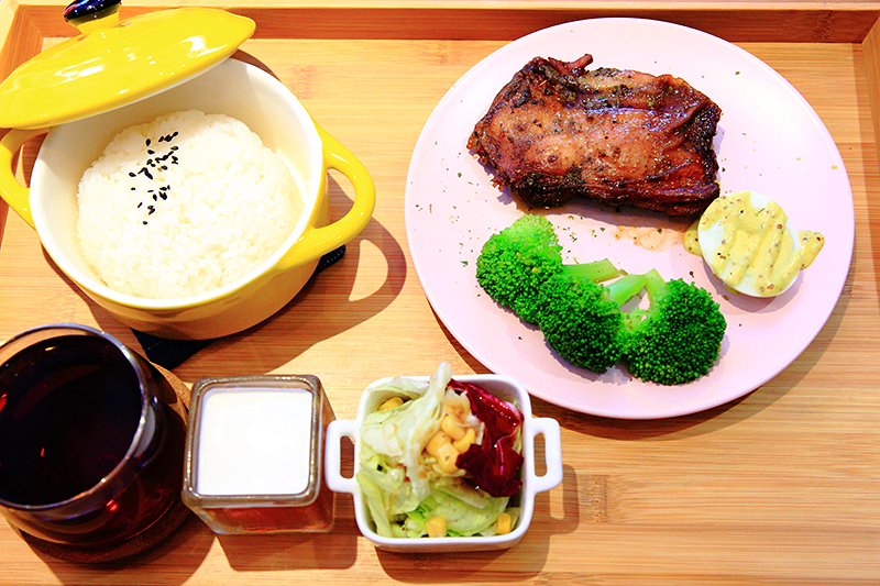 第二款:義式香草豬肋排300元,一樣是套餐系列,有麵包、紅茶、沙拉、奶酪果凍,看似普通的擺盤,一樣很精緻,最棒的是一早上就可吃到熱騰騰的食物,讓人心情大好。