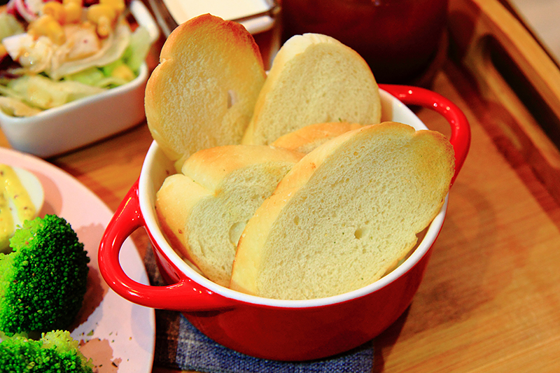 烤的非常酥脆的麵包,單獨吃,可吃出本身麵包的香氣,或是沾著其他配料的醬汁一起吃,增添變化性與豐富口感。
