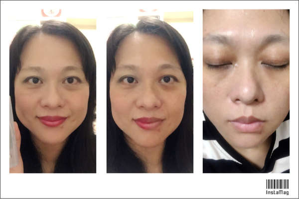 全臉,左右半邊臉我各用一片卸妝棉來卸,卸的還蠻乾淨的,我再用第三片卸妝棉做最後清潔,就完全卸乾淨了,卸完妝感覺相當清爽不緊繃,摸起來有潤澤感,完全不粘膩,真的很舒服。