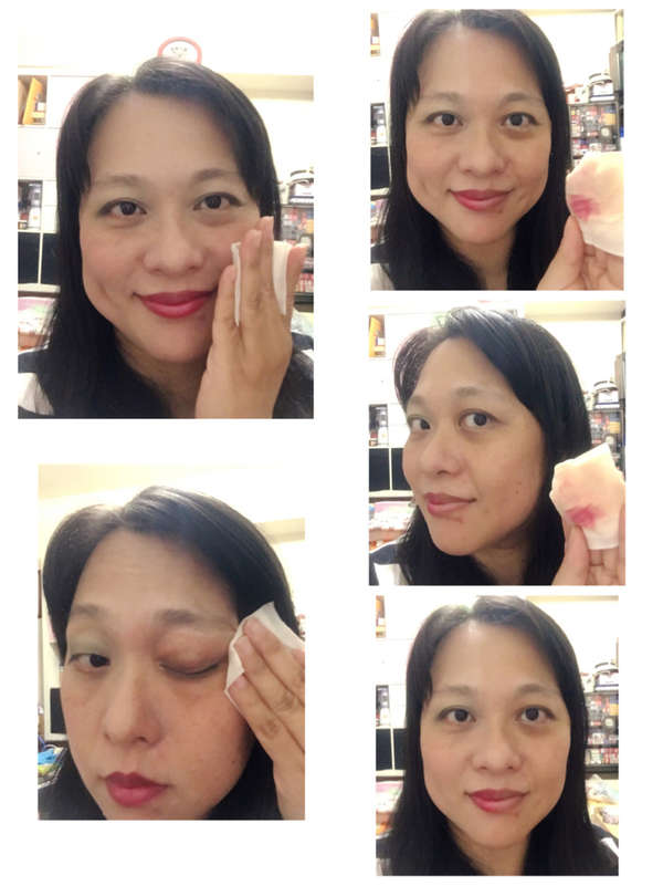 今天我是上了全妝~底妝、眼影、腮紅、口紅(只差沒上睫毛膏),我先用一片沾了卸妝水的化妝棉卸了半邊臉,卸的時候覺得這款卸妝水真的非常的溫和,完全沒有刺激感,非常輕鬆的就完全卸掉臉上的淡妝,口紅和眼影真的好明顯都卸乾淨了!