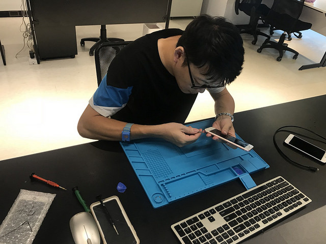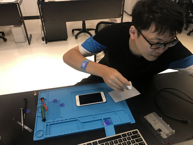 就看他們的人員細心的小心翼翼地在把手機弄好~