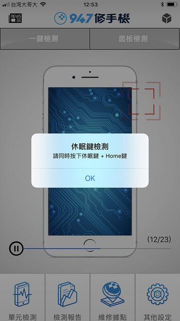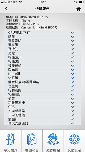 手機會出現這樣的畫面~ 進行各種的檢視檢測~