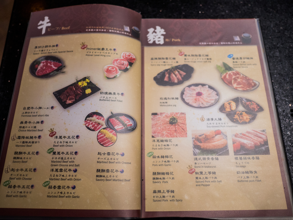 ▼之前來兩次都是吃$535的,這次來吃$735的看看,基本的牛豬,也有香腸、大腸等食材。