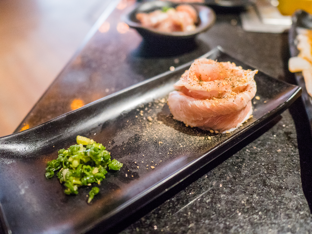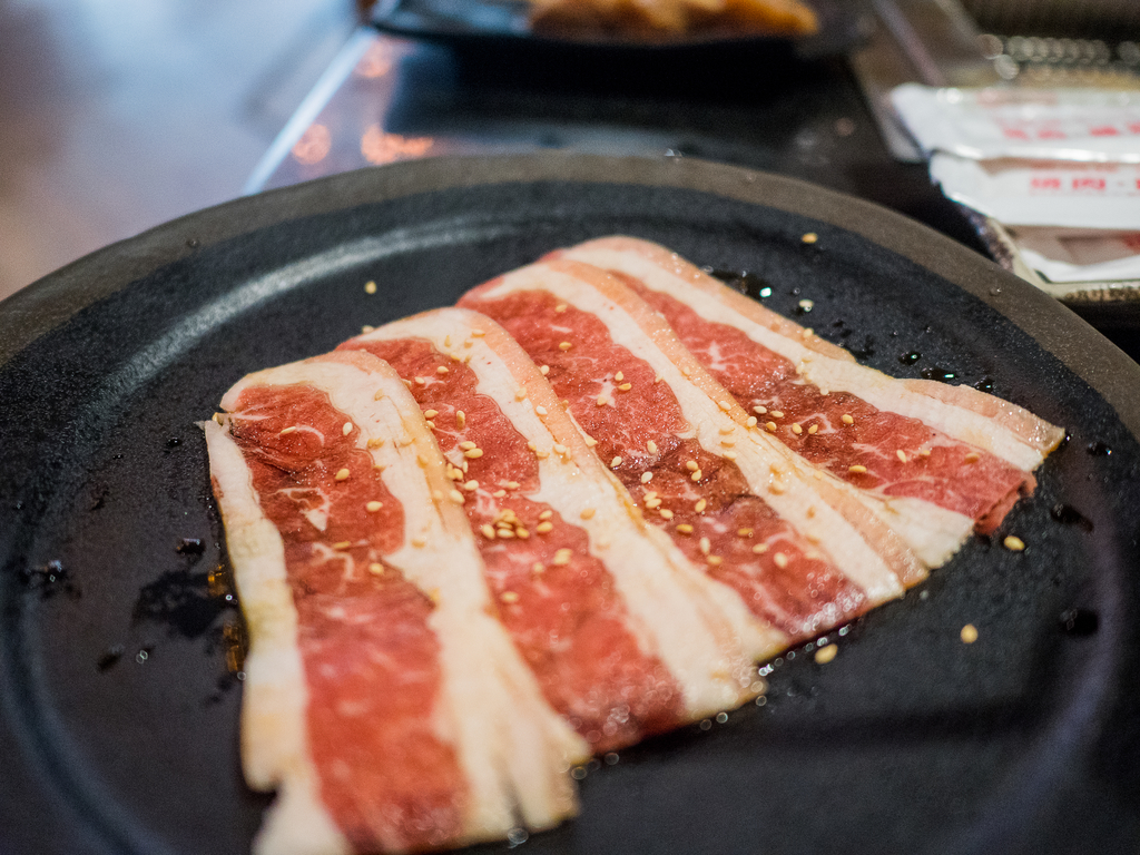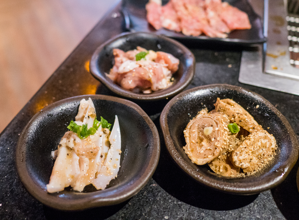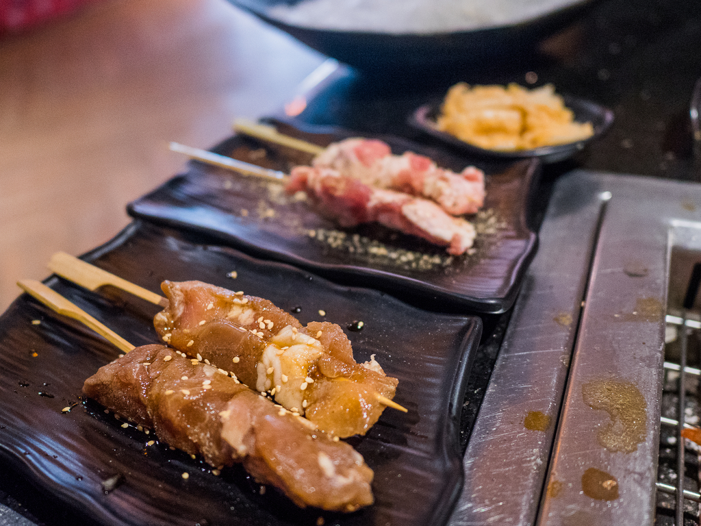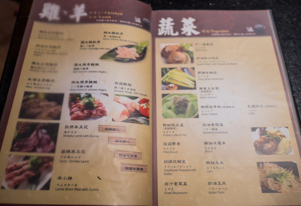 ▼雞肉、雞心、雞屁股應有盡有,還有羊五花跟羊小排,想要養身點的,蔬菜也提供了不少選擇(但我根本不會在燒肉店吃菜啊!)。