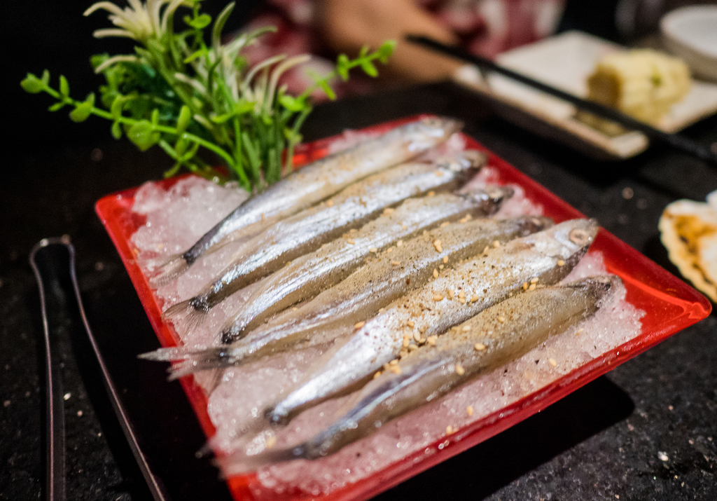 ▼烤網殺手柳葉魚,每烤必黏網,但是烤好之後,肚子裡面滿滿的卵超美味。