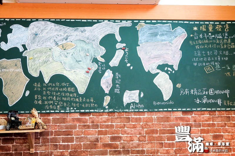 沙發區上面的黑板手繪著世界地圖,我們台灣看起來好大喔ㄎㄎ