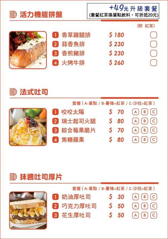 價位真的都很親民,而且單點主餐還能加49元升級為套餐