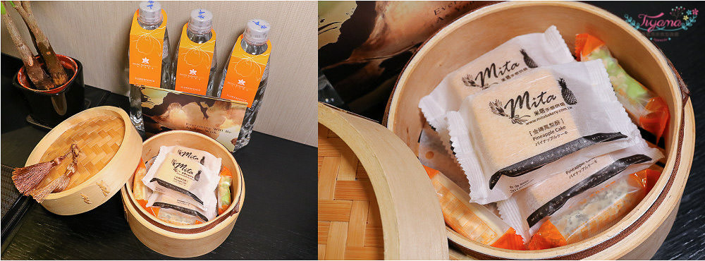 很棒的是…客房除了瓶裝水外,飯店還特別準備了"迎賓甜點"!!是鳳梨酥和牛軋糖,通通都是台灣具代表性的伴手禮,好涮嘴…還為我們準備3份,揪感心