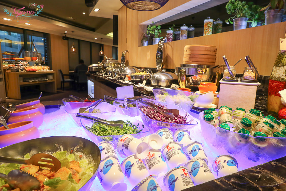 自助區菜色豐富多樣化,沙拉吧、熱食區、麵包&起士&果醬、日式冷麵、中式粥品&湯品、醬菜類、水果、飲料…等等