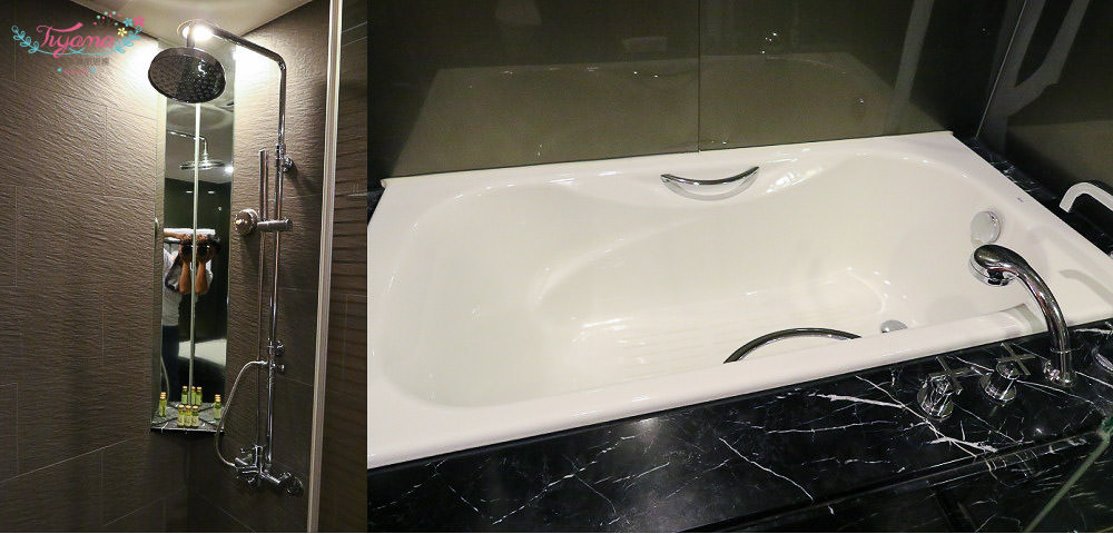 浴室是乾溼分離的設計,淋浴後再泡個暖呼呼的熱水浴最舒服了!!洗手台在外面,使得浴室空間大又寬敞,感覺很棒