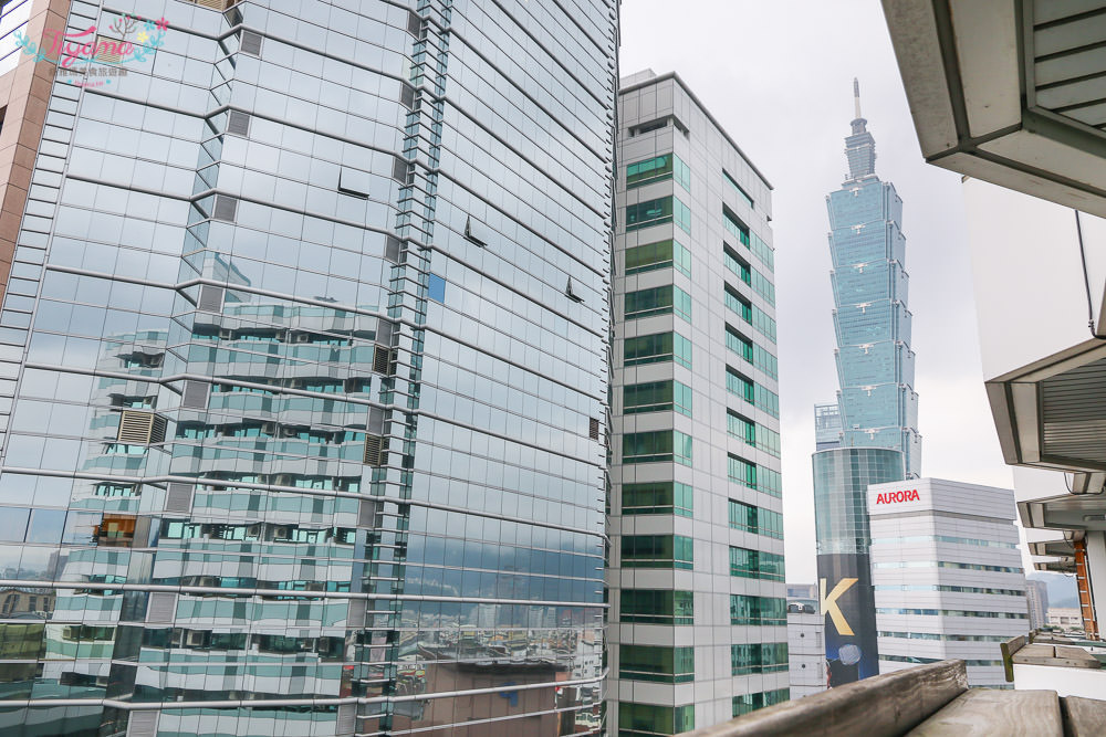 讓人好驚喜的是景觀落地窗,走出小陽台往側邊一望,竟然可以看到101大樓,白天和夜晚的風采盡收眼底,據說每到跨年煙火,這裡就會一房難求,12樓更有個絕佳觀賞台,想看101跨年煙火,現在就要開始訂房了