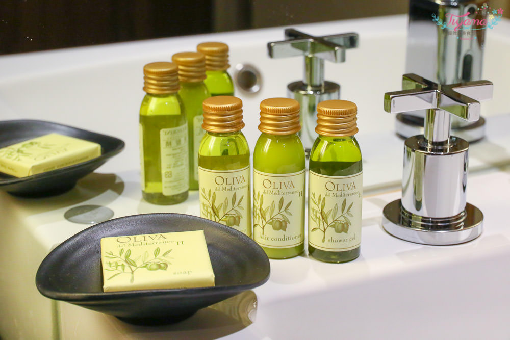 選用OLIVA沐浴組,個人很喜歡它香清的味道,盥洗備品、吹風機都放在下層拉櫃裡,在最下面看到最不想面對的體重機…哈哈