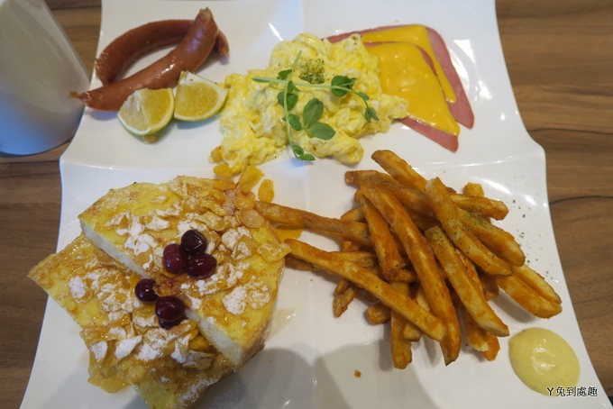 拼盤其實還滿適合兩個人一起吃的,兩個法式吐司、兩片起司火腿...,都剛好能分成兩人份
