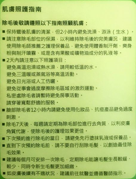 PS.店面也有做私密處除毛唷,老師們身經百戰,看過無數的妹妹,聽說私密處除毛會比較痛一些些,但除完後不僅會很透氣舒服,肌膚變光滑、穿比基尼不會害羞外,生理期也不會悶熱感也會減低。