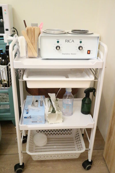 兩位正妹美容師來到我的身邊,不需要拍打不需要冰敷,熱蠟除毛馬上開始。躺上床前,會先用淡香精油噴在枕頭的位置,接著除毛前也會用 專業的RICA的棉花清潔凝露清潔除毛部位。