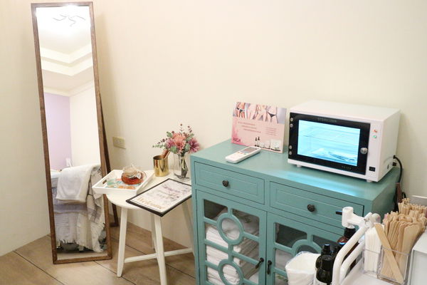 諮詢完後前往二樓,室內空間一樣沒話說,讓人一看就很放鬆的空間,相當舒適,對了,美容床上有兔子布偶,問了一下說是給怕痛客人握著用的,可以紓壓,我想大概是妮妮媽媽的概念。