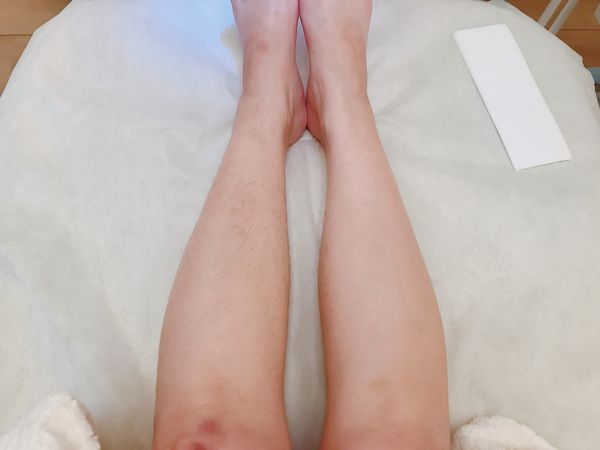 整個除毛的時間大約進行1小時左右,一位老師負責手,一位負責腳,兩位老師動作非常俐落,老師說除毛要注意毛流方向,不管是上蠟或是撕除都有不同的方向要調整,因為要避免過程中撕斷毛或是除不乾淨。