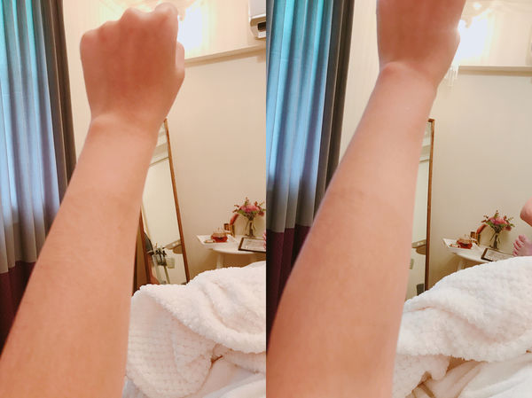 看看,是不是很驚奇呢!顏色還有亮了一階耶,接著是第二層。PS.除毛的同時也有幫你去角質,所以膚色更明亮了,雖然我本人還是有點巧克力色就是XD。