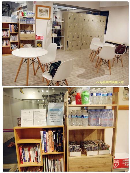 置物櫃、AED器材、礦泉水、飲水機和面紙...等等
