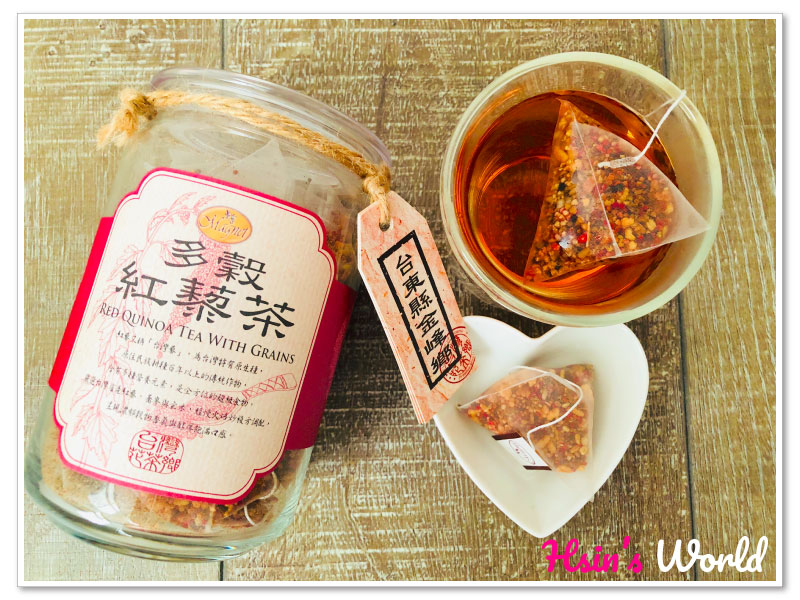 一打開罐子就聞到淡淡的穀物香氣,茶包內有紅藜、蕎麥、玄米這三種穀類,近年來研究發現紅藜含有豐富的營養價值,被譽為「穀物紅寶石」,與蕎麥、玄米,焙炒後複方調配,製作出濃郁多層次的穀物香氣。用熱水沖泡之後香氣淡雅,粉紅色的茶湯色迷人而溫暖,輕輕啜飲搭配上曲奇小餅乾,喝下後有種放鬆的神奇感覺,這陣子比較疲勞,常常覺得睡不好,除了下午茶飲用搭配餅乾外,我嘗試在睡前也泡了一杯來喝,溫暖的香氣讓人讓人感到放鬆,很快就熟睡,真的很適合睡前來一杯。