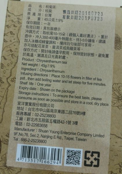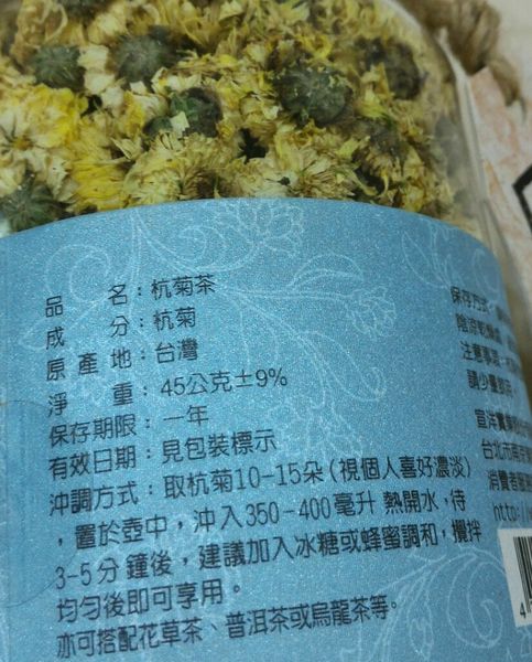 貼心小提醒: 杭菊性微涼, 體質較弱者, 請少量飲用