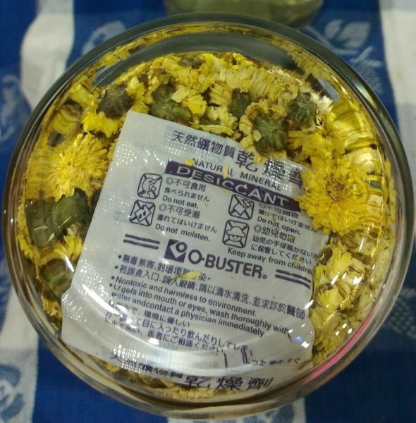 瓶子底部還有乾燥劑, 保持杭菊茶的乾燥