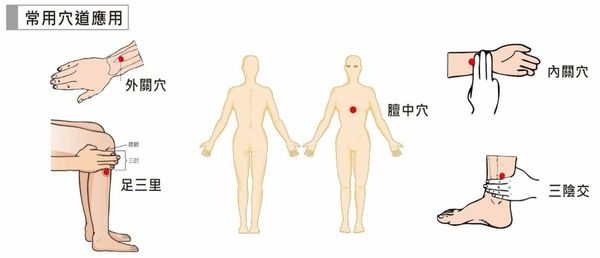基本上我自己使用比較多是在外關穴、內關穴、三陰交等,