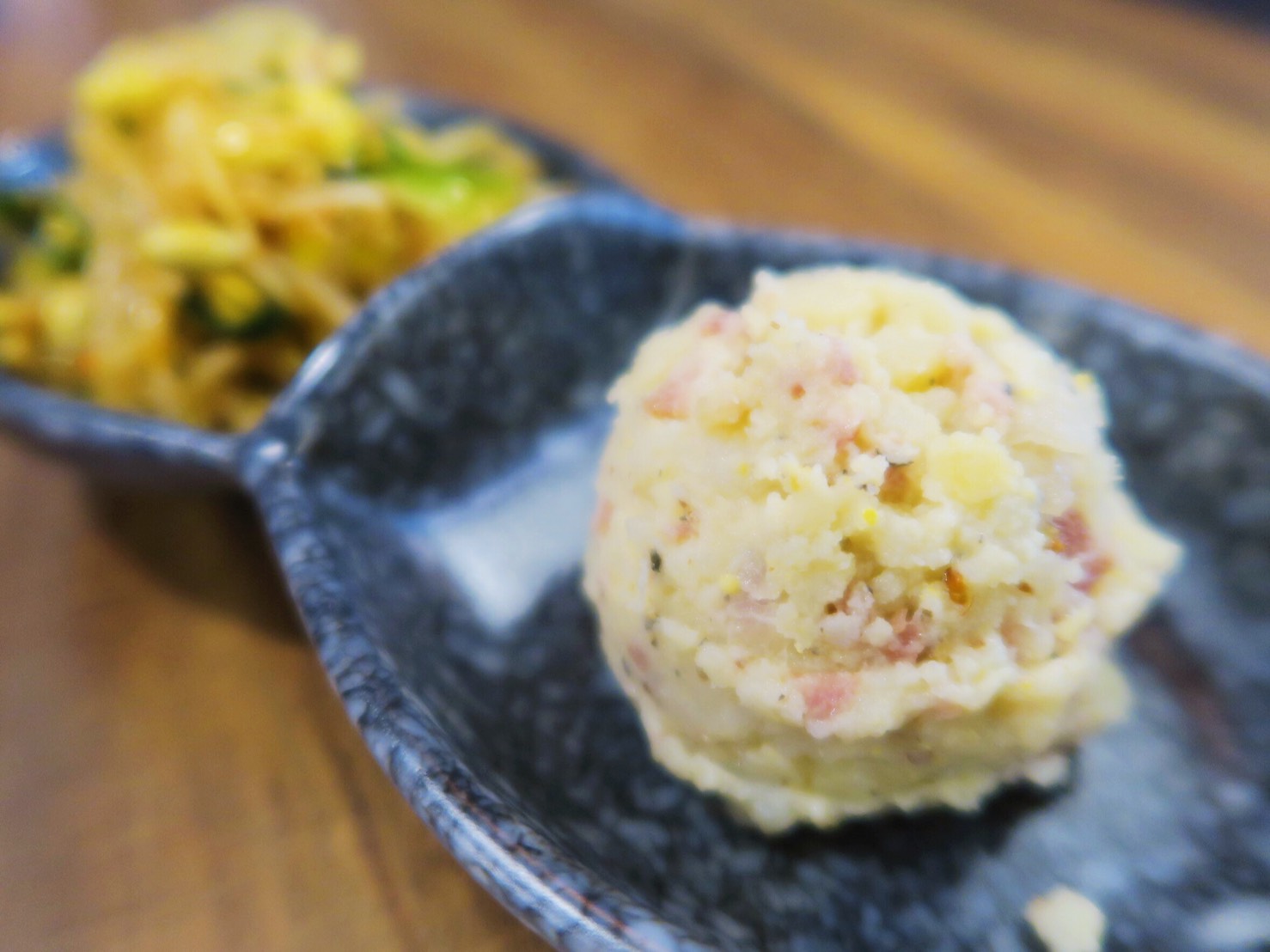 圓圓的「馬鈴薯泥」看起來相當討喜,馬鈴薯口感綿密,味道濃郁,吃起來不膩,多來幾球小編也是OK的! 裡面的培根碎塊,增添料理的味蕾層次。小菜吃完之後