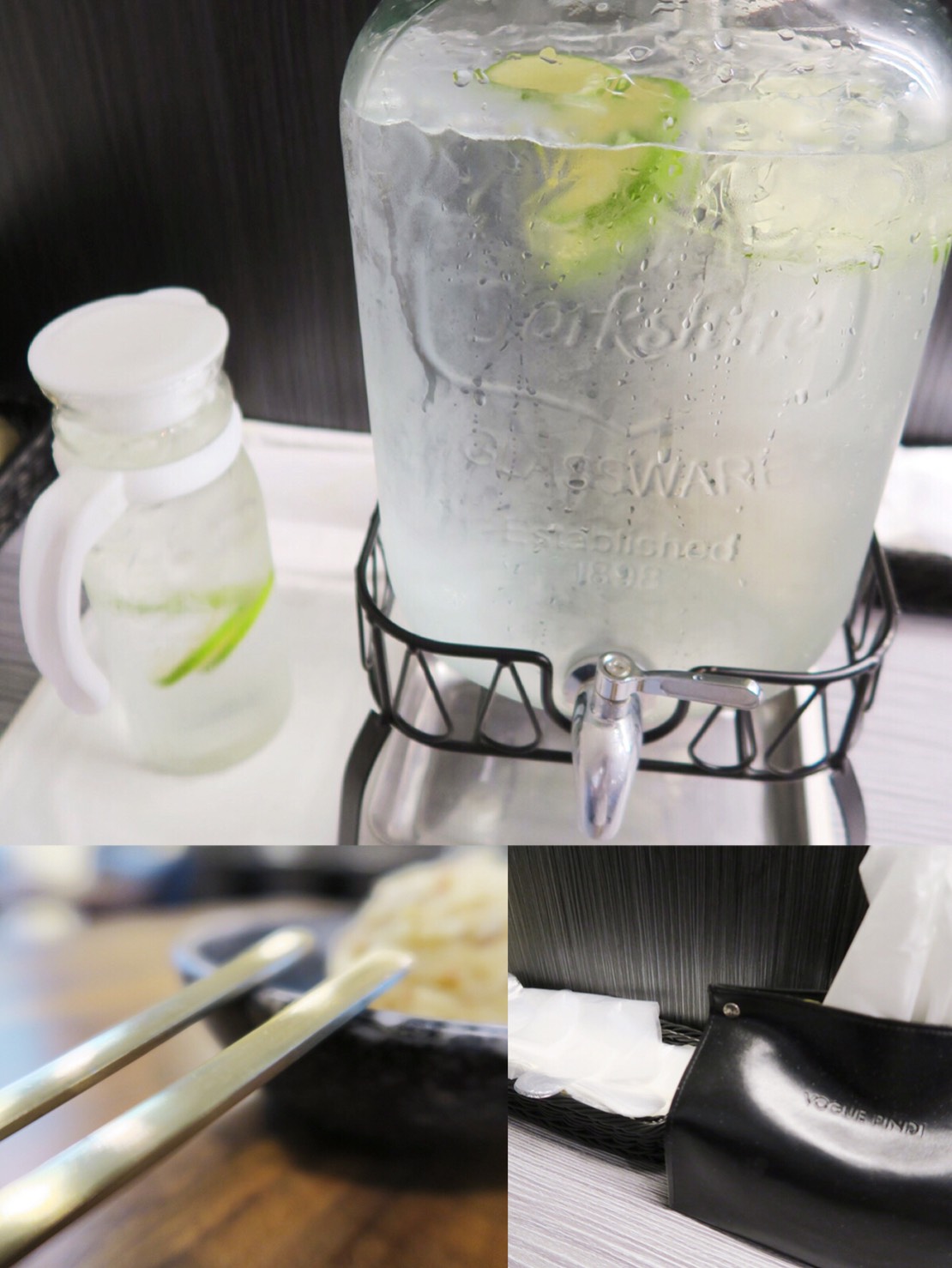 店家備有檸檬水供客人使用,筷子採用韓式扁筷,放置時,容易固定在餐具上,不會滑落。點餐完畢之後,就準備來開動啦!