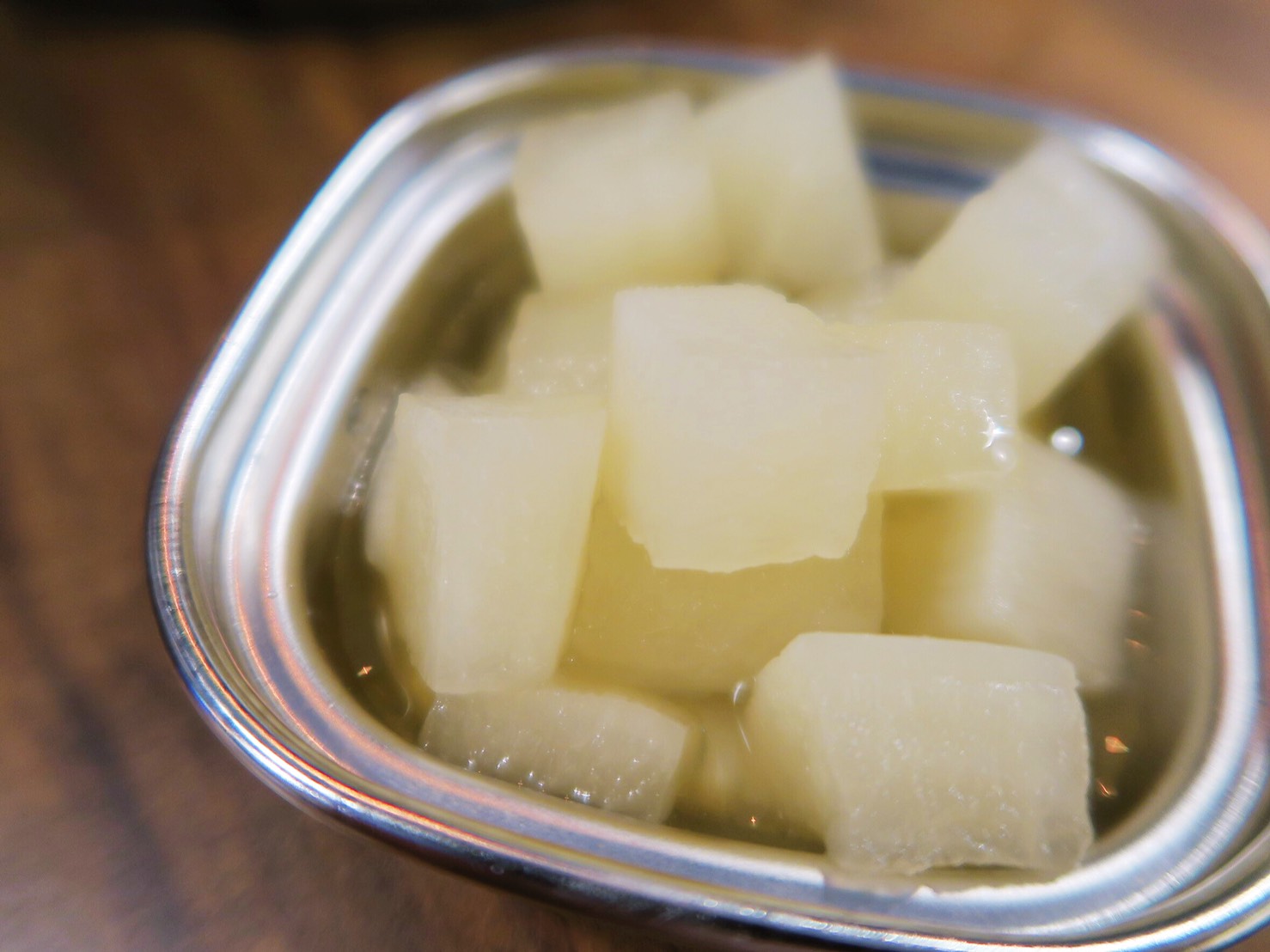 歐巴炸雞附的醃漬白蘿蔔,小巧好入口、酸酸甜甜,在以辣為主軸的韓式料理中,顯得相當清新爽口,轉換一下嘴中的味道後,反而更能開心吃到每個食物的美味喲!