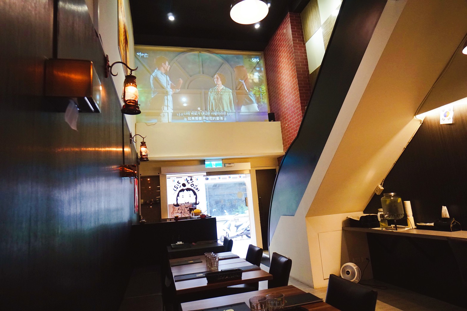 門口上頭的白色牆面,店家會用投影設備播放影音,這麼大的牆面,可豐富視覺享受!