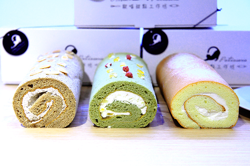 不一會兒完成了這款屬於萍子自己手作DIY的抹茶柚子生乳捲,好有意思。