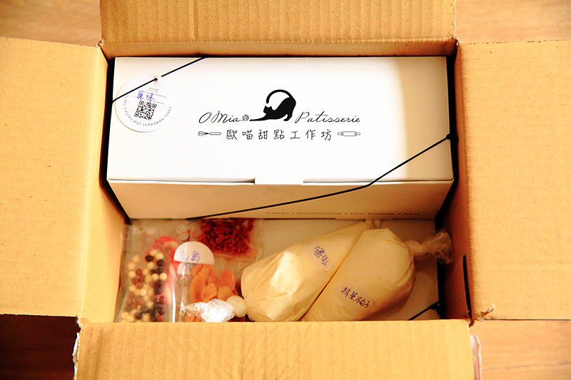 想要訂購O miao歐喵甜點?只要點選此粉絲團即可購買,粉絲團:https://www.facebook.com/omiaopastry/。下訂後就有黑貓宅配人員送貨,非常輕鬆,從宅配手中拿到包裹,可見上頭也貼了「此面朝上」、「冷凍蛋糕」等重要字樣提醒,讓收到包裹不要有毀壞。