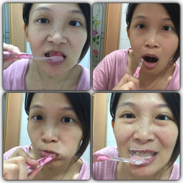 以舌尖舔舐牙齦及齒面
