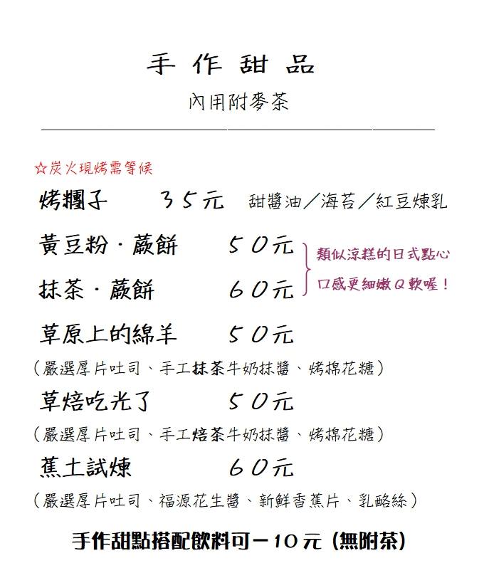 手作甜品系列,內用還附麥茶吔(也可換其它飲料可折$10)