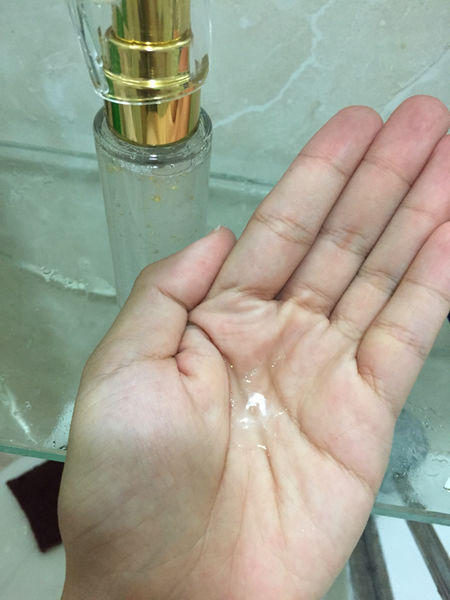 搖勻後的金緻馥活菁萃質地上還是偏向水狀,但在光線下可以看到點點的油光