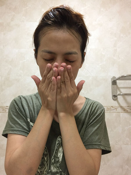 聞香後,用掌心按壓在額頭、雙頰、下巴,利用掌心的溫度來加強吸收