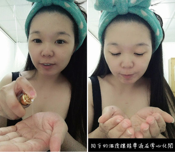 使用說明小准也仔細說明給大家看,用前瓶身要記得搖勻在按2-3下在掌心上,利用手的溫度讓金緻馥活菁萃在掌心中化開