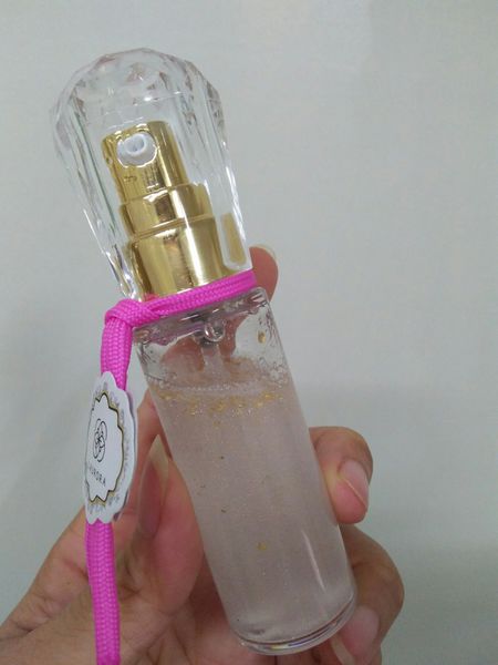 瓶蓋像是用鑽石切割的方式呈現,而且小准蠻喜歡這種透明的包裝,也能知道使用的量有多少,透明瓶身裡面的內容物可以看得一清二楚,裡面有非常多亮亮的金箔耶!感覺更豪華奢侈了