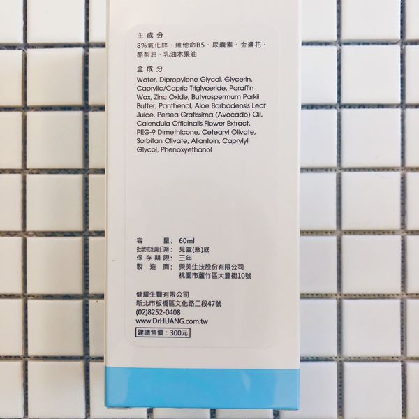 主要成分有: 8%氧化鋅、維他命B5、金盞花、乳油木果油、酪梨油、尿囊素