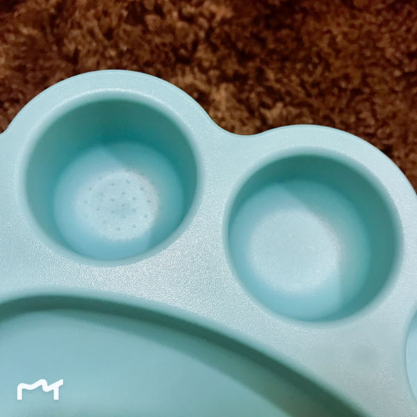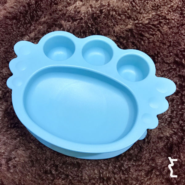 在餐盤的左上角那格有沒有看到顆粒凹凸的設計,它是方便壓泥狀食物用的,如馬鈴薯泥、南瓜泥