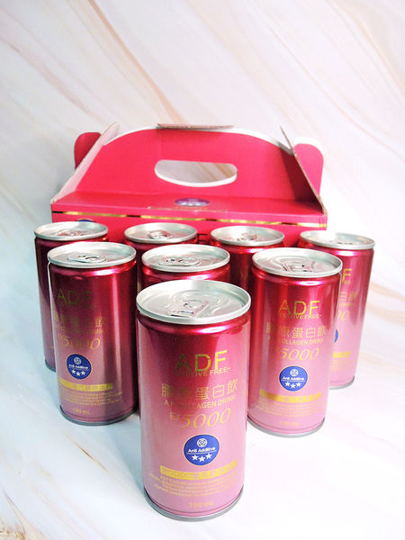 每盒有八罐膠原蛋白飲,每罐190mL,皆含5000mg的膠原蛋白成份