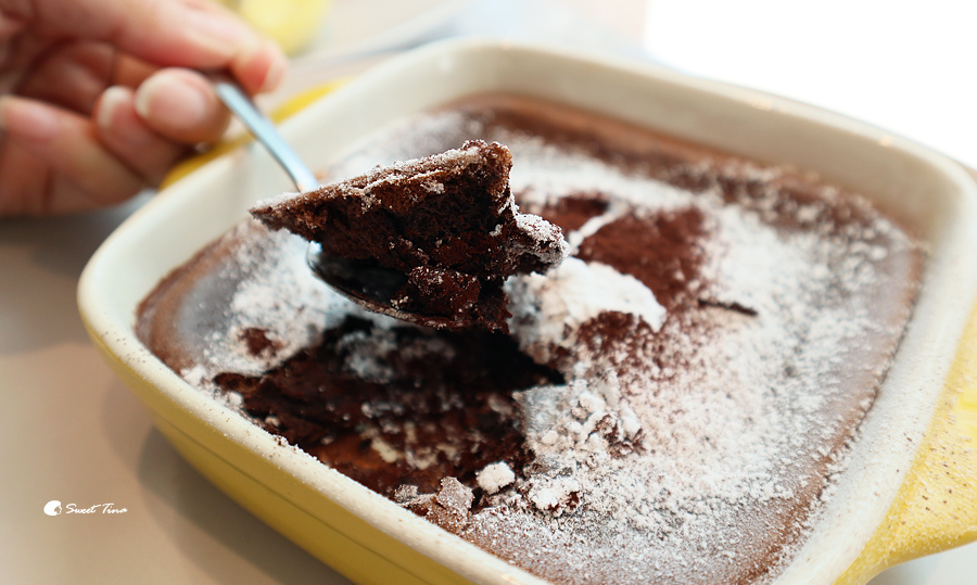 手作凹蛋糕(巧克力) - 凹蛋糕略帶點溼潤感,甜度抓得非常好,完全不膩口外還可以吃到巧克力的香氣,這口感我好喜歡喔。