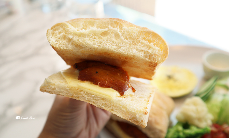 巧巴達裡除了夾著雞腿肉還有起司,沒有多餘的沙拉醬,真的相當清爽。