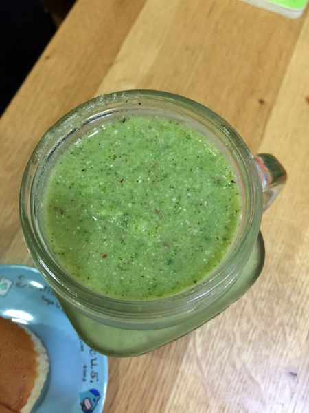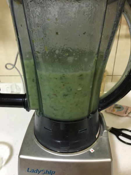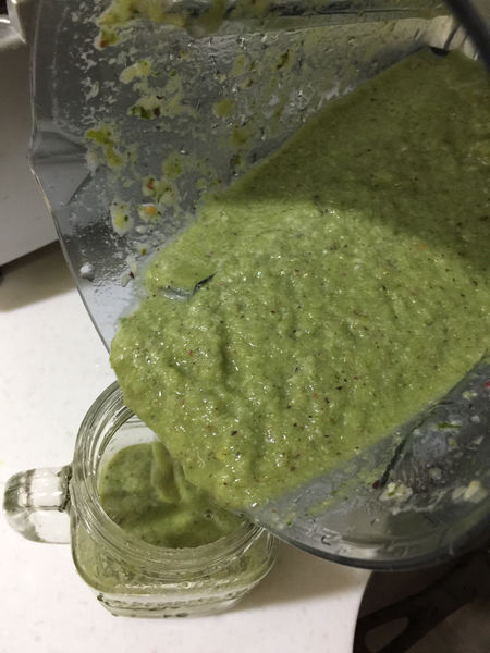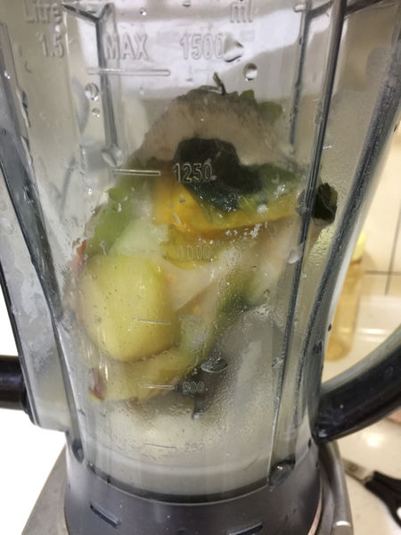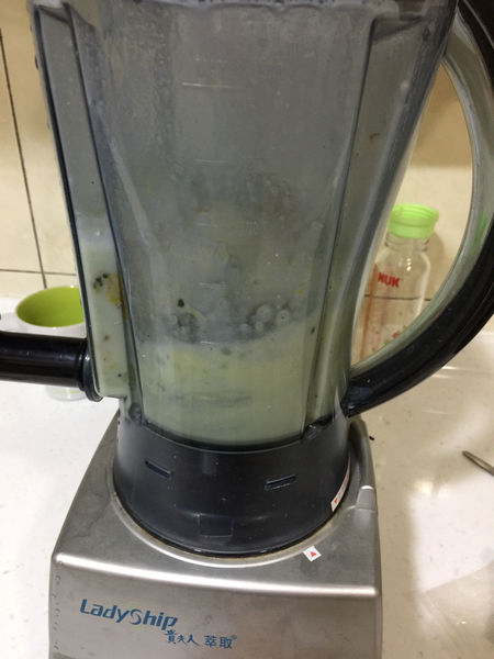 顏色呈現淡綠色,看的到蔬果及堅果的渣渣