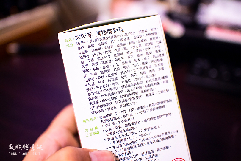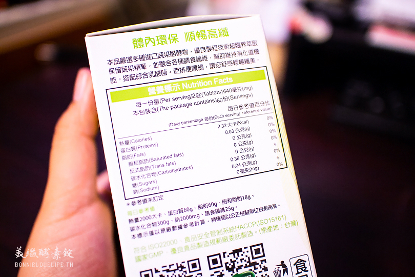 大乾淨美纖酵素錠在盒裝的部分有非常詳細的成分介紹以及食用方式,產品符合ISO2000、食品安全管制系統HACCPI(ISO15161)國家GMP,優良食品委託製造,原產地在台灣喔!