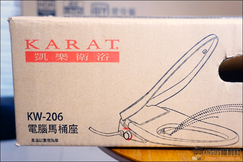 ▼ 在外包裝上有印刷出 KARAT 凱樂衛浴的LOGO與型號名稱 KW-206電腦馬桶座 外,也有特別印刷出示意圖讓消費者了解產品大概的外觀樣式。